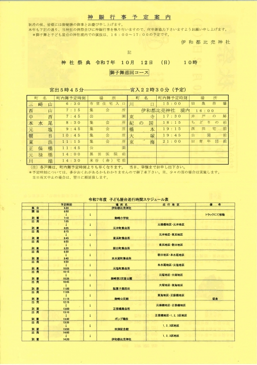 【10月12日(日)秋祭りのご案内 – 伊和都比売神社】