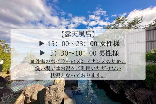 ※現在、露天風呂の洗い場ではお湯をご利用いただけない状況となっております。